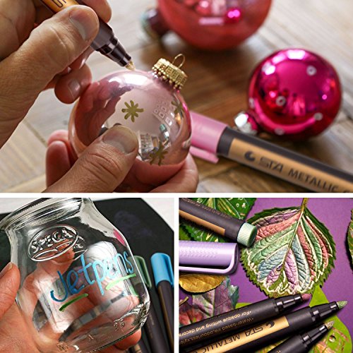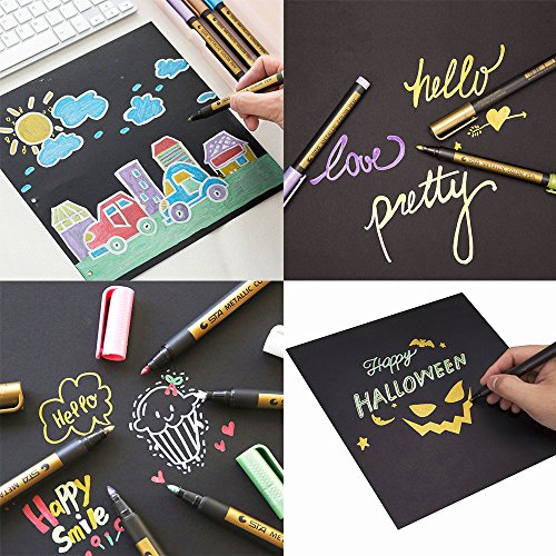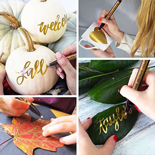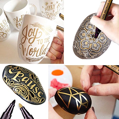 - VIRTUALLY ANY SURFACE : These metal art paint marker can be used for rock painting, black paper, dark colored cardstock, wood, photo album, plastic, glass, pottery. And just be sure to give them some drying time!