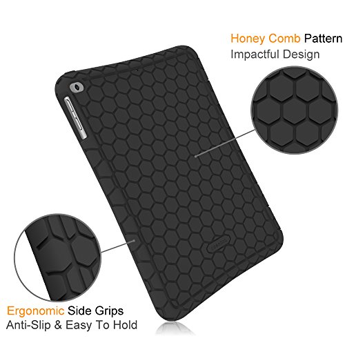 Fintie New iPad 2017 9.7 Inch / iPad Air 2 / iPad Air Case - [Honey Comb Series] Light Weight Anti Slip Kids Friendly Shock Proof Silicone Protective Cover for Apple iPad 2017, iPad Air 1 2, Black