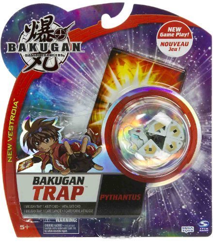-. Feature : Boost your attack! / Bakugan Trap are special Bakugan with unique shapes. They can be used in combination with regular Bakugan for more strategic battles and more powerful attacks. / Include 1 Bakugan Trap, 1 Ability + 1 Metal Gate Card. / For age 5 and up / Warning! Risk of serious digestive injuries in the event that magnets are swallowed!