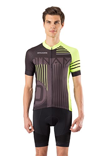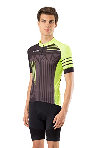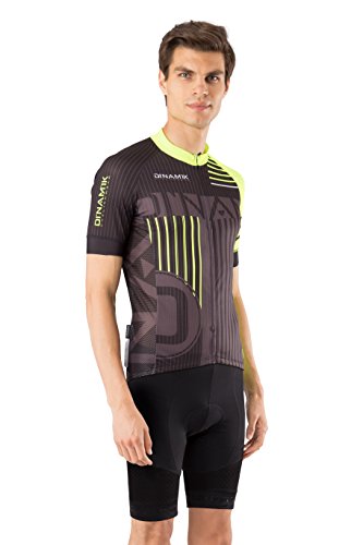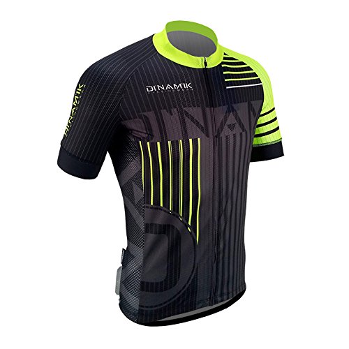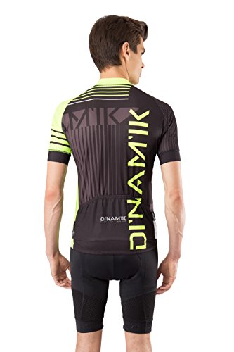 Dinamik Evo Pro Signature Men’s Short Sleeve Cycling Jersey Breathable Quick Dry Black Neon Green with 3 Pockets (X-Large)