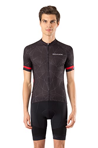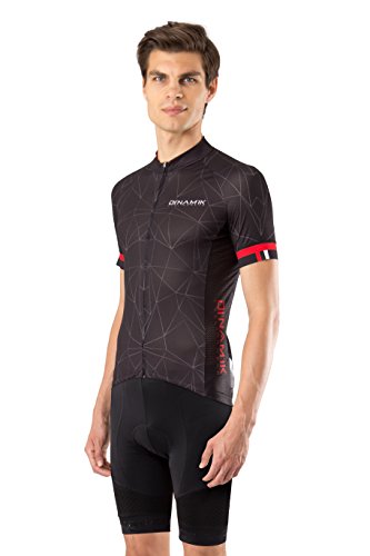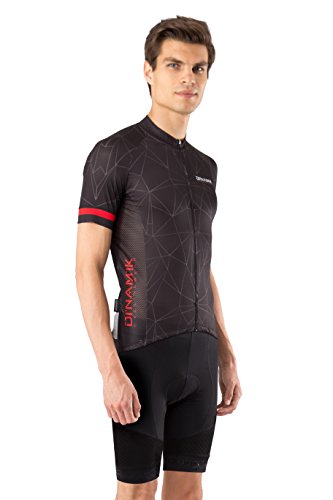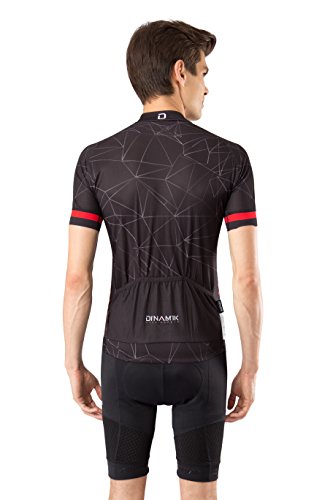 Mens Cycling Jersey Light Breathable Moisture Wicking Biking Shirt by Dinamik EVO Pro (Large, Black/Red)