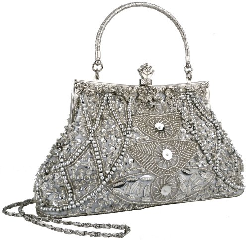 - Title : MG Collection Louise Exquisite Seed Bead Sequined Leaf Clasp Clutch, Silver, One Size