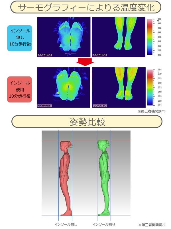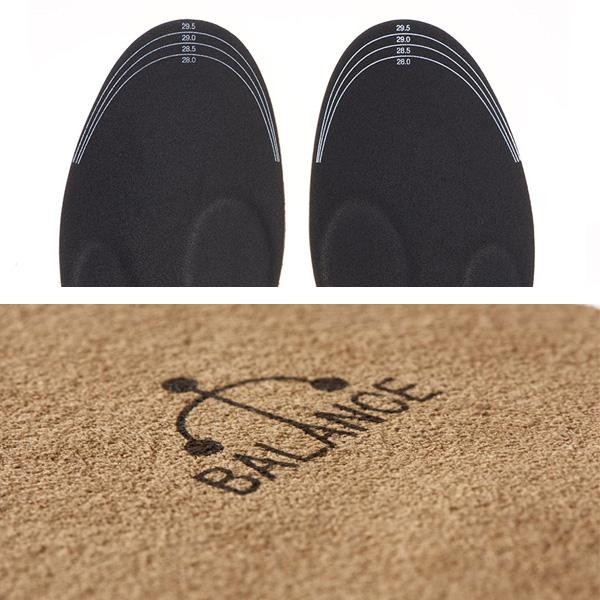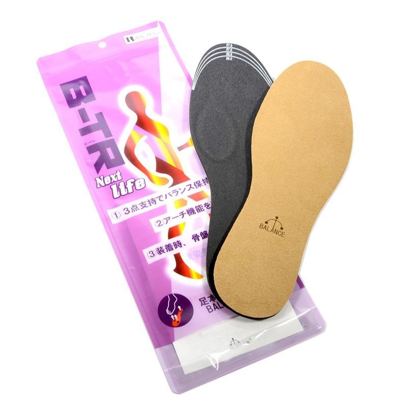 特許取得の構造で足裏の踵、拇指球、小指球の3点を高くすることにより、姿勢保持力を高め、アーチの上下運動を促進!ベージュカラーのインソール。