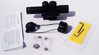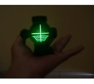 Pada lensa bidikannya menggunakan Cross yang bisa menyala merah dan bisa diganti menyala hijau.