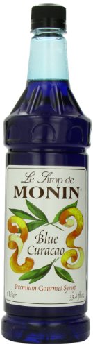 Monin Flavored Syrup, Blue Curacao, 33.8-Ounce Plastic Bottles (Pack of 4)