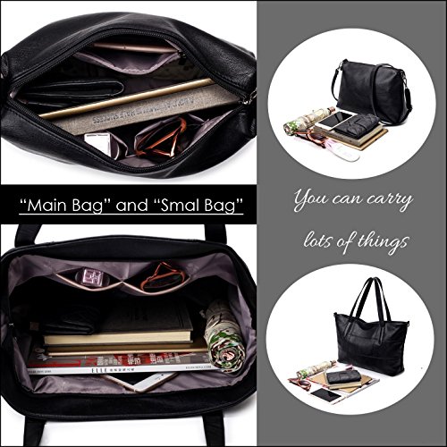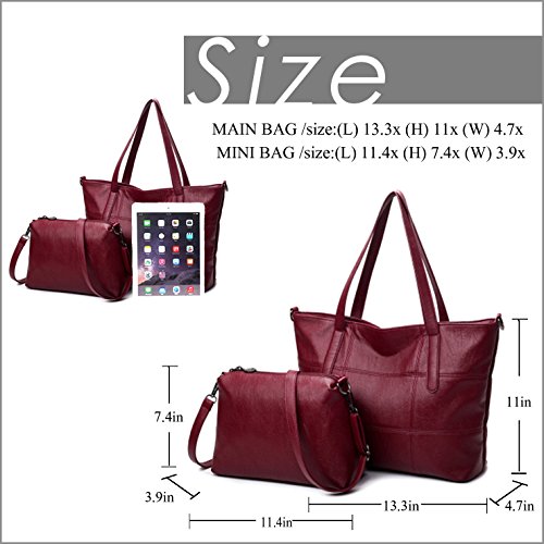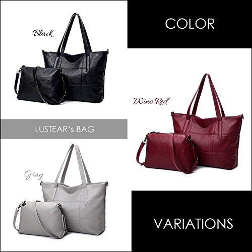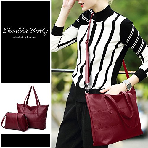Lustear Soft Leather Tote Bag HandBag Two-Piece Large Package for Women