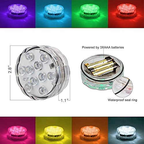 IP68 Waterproof Colorful LED Light - The creative LED lights are made of high quality waterproof materials and could be used underwater. Put the submersible led lights underwater, beautiful changeable colors of water would show. You can use it for pond, swimming pool, aquarium,vase , ect