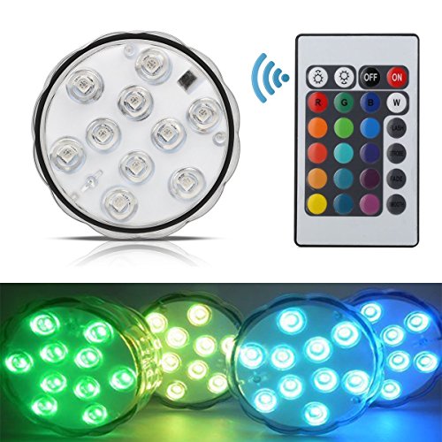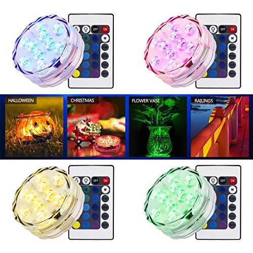 Submersible LED Lights Remote Controlled Vase Light, RGB Multicolor 10-LED Battery Operated Waterproof Pool Lights, 4-pack
