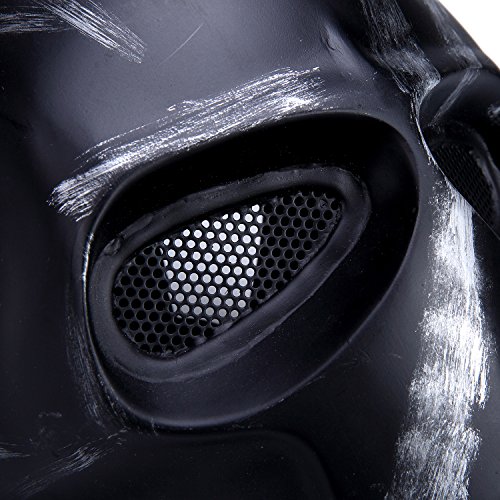 -. Feature : Nice Built Quility Worth the P.R.Ice - High strength glass fiber composite materials, withstand the hit of high power / Ergonomic Design -- Provides comfortable and breathable wearing condition to your whole face / Secure & Comfortable Fit -- Metal mesh eyes protector and comfortable cushion pads are located inside the mask, protect the weak part such as eyes and teeth without misleading visual judgment / One Size Fits Most -- With 5 adjustable elastic belt strap full face mask fits most teens and adults / Suitable for a Wide Range -- Can be used for Parties, Movie props, Halloween, Cosplay, War Game, Airsofts, Hunting or other outdoor activities