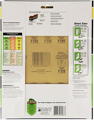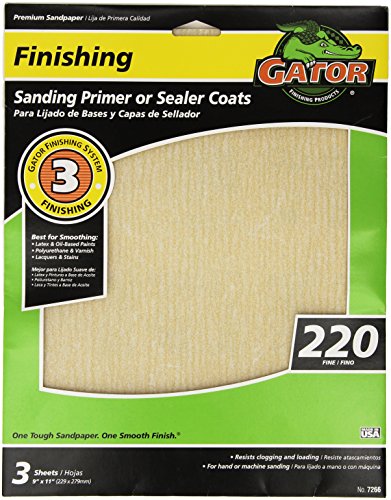 Gator Finishing 7266 220 Grit Aluminum Oxide Sanding Sheets (3 pack), 9" x 11"