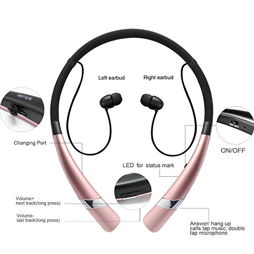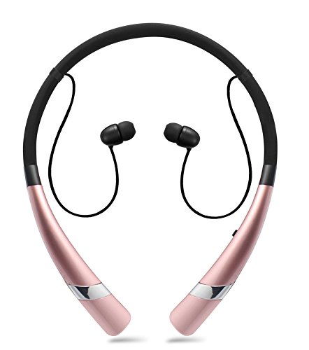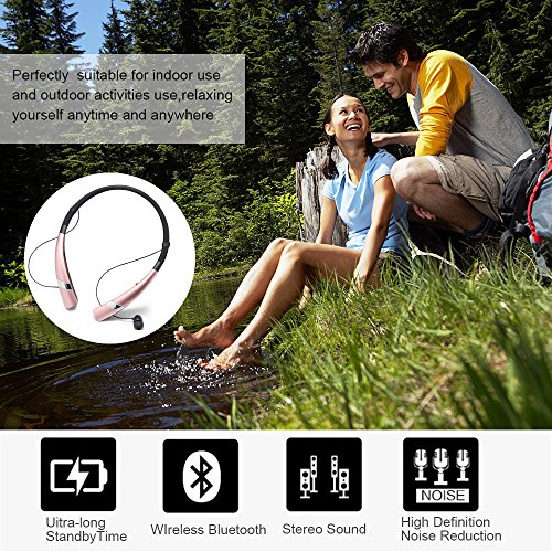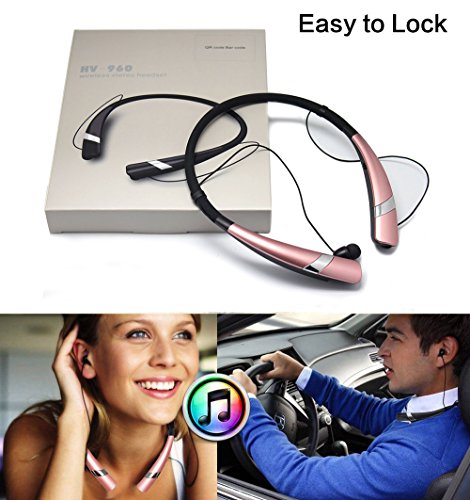 Bluetooth Earbuds, HV-960 Sweatproof V4.0 Wireless Neckband Noise Reduction Headphones with Microphone, APT-X Hands-Free Bluetooth Stereo Headset Earphones with Magnet Holders for Light Sports (Pink)