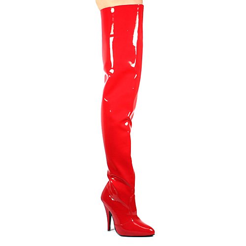 5 Inch Sexy Thigh Hi Boot Classic Plain Thigh Boot Single Sole Red Patent
