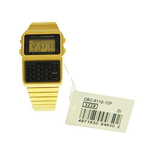 Casio #DBC611G-1D Men's Gold Tone 25 Memory Calculator Databank WatchData Bank Collection