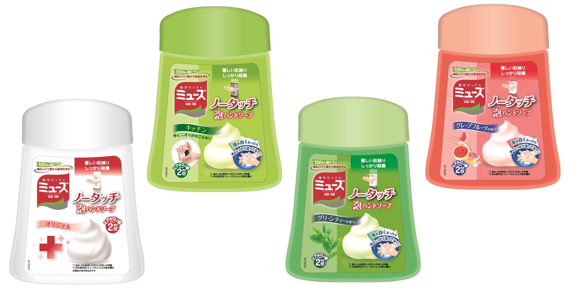 Japan Health and Beauty - Muse no-touch foam Hand Soap Refill Variety set (original / kitchen / green tea / grapefruit each 250ml) (about 1000 times) automatic dispenser sterilization moisturizing *AF
