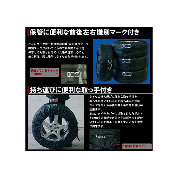원본상품명: 【 タイヤ位置記?マ?ク付き 】 タイヤカバ? 4枚セット タイヤを劣化から守る 取っ手 ポケット付き 持ち運び便利 (13~19インチ??) SD-TCR