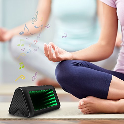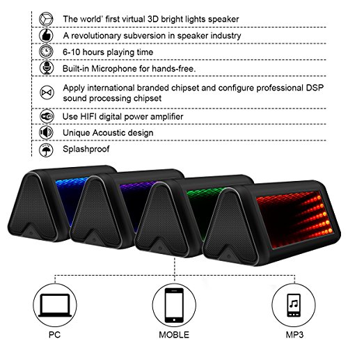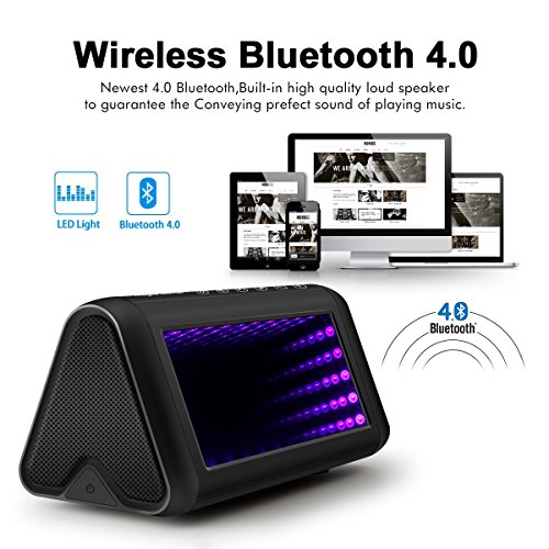 Bluetooth 4.0 Technology and 3D LED Lights Design - Equipped with the advanced technology, compatible with all Bluetooth-equipped devices. Speaker automatically reconnects to the last device used. When the music is playing, the 3D lights with music rhythm, can regulate and relieve the mood;It has built in microphone and support hands-free function, you will get clear and high quality sound for any situation.