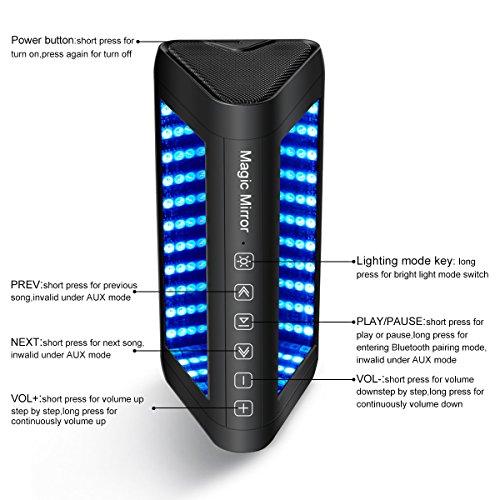 Prefect experience: The Magic Mirror Bluetooth speaker features with stylish and glamorous design, pretty convenient to carry. The distortion-free and clear sound quality, 3D LED lighting technology will provide a perfect visual and auditory double experience to you.