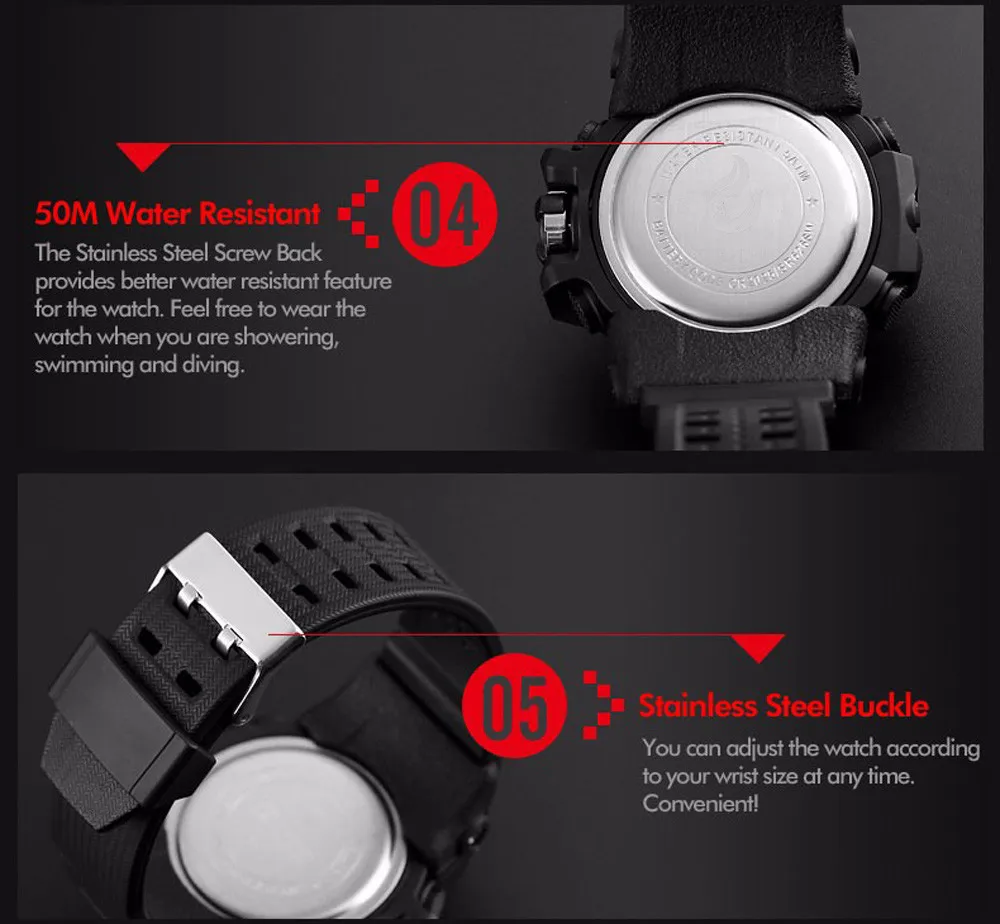 Feature:Water Resistant,LED display,Multiple Time Zone,Back Light,Complete Calendar,Shock Resistant