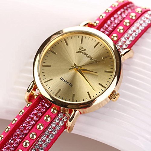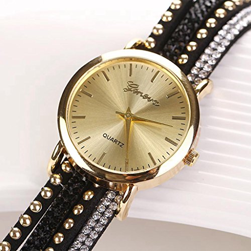 -. Title : POTO 2017 New Women Crystal Rivet Bracelet Quartz Braided Winding Wrap Wrist Watch Fashion