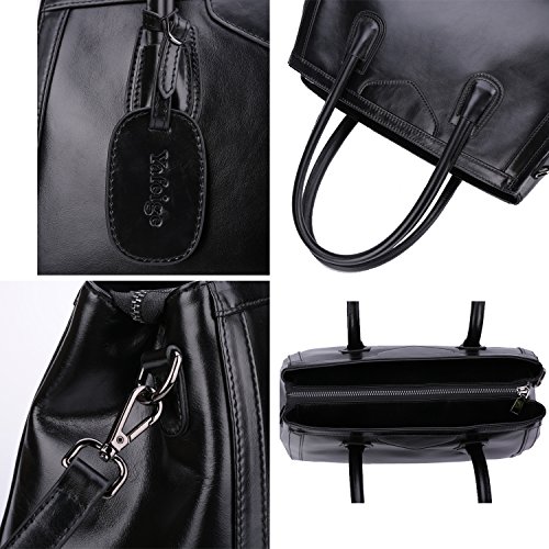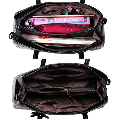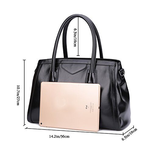 -. Feature : Material: Advanced and P.R.Ime waxed leather (Genuine Leather),come with Gun color custom antioxygenic hardware, sturdily constructed with detailed streamlined stitching and durable smooth fabric lining. Waterproof, wear resistant and durable in use. / Strap: Double handle(6.3 in, Long enough to put on shoulder) with a removable and adjustable long shoulder strap. Convenient & Comfortable to wear in 3 ways: Tote, Shoulder and Cross Body. / Features: Hand made by professional artisans. Smooth zippered closure. With 2 big inner compartment, 1 interlayer zipper bag,1 interior zipper slot pocket, 2 open pockets for smartphone, credential and cards.The bottom of bag has five textured metal five which is effective for protection against wear. / Capacity :Easily carry your IPAD Pro or tablet, Iphone7 plus, Kindle, notebook, wallets, key, umbrella, ID card, driving licence,Checkbook, makeups and other daily thing with you. Perfect leather handbags for work or travel. / Dimensions: (L*H*W)14.2"*10.7"*6.3" inch / 31*24*12 cm , the weight is about: 2.9 pounds.