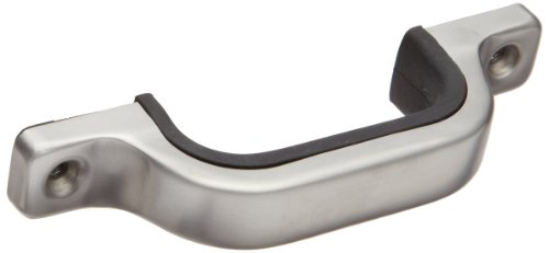 Sugatsune US 304 Stainless Steel Pull Handle with Black Synthetic Rubber Grip, Satin Finish, Threaded Holes, Rectangular Grip