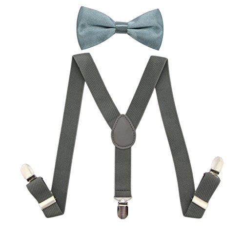 JAIFEI Boys Suspenders & Bow Tie Set (Elastic Adjustable--Strong Clips)