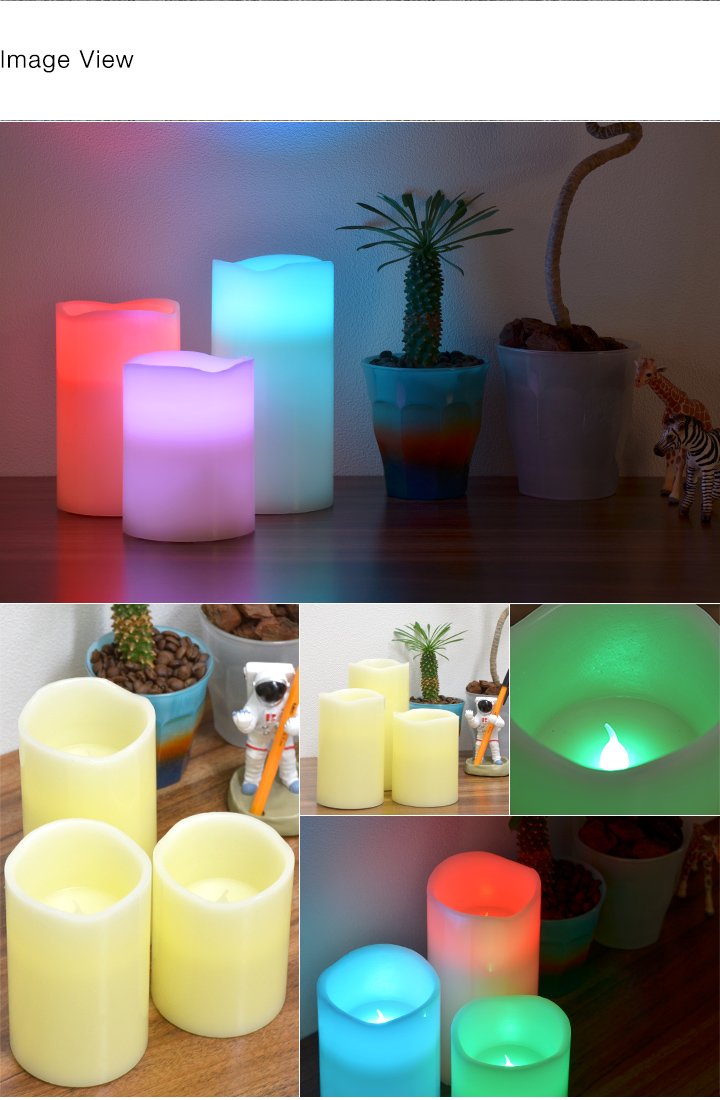 The LED candle swaying like a flicker swaying, gradually changing in various colors,