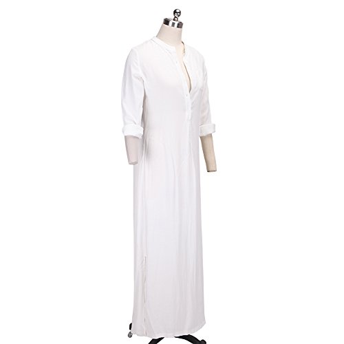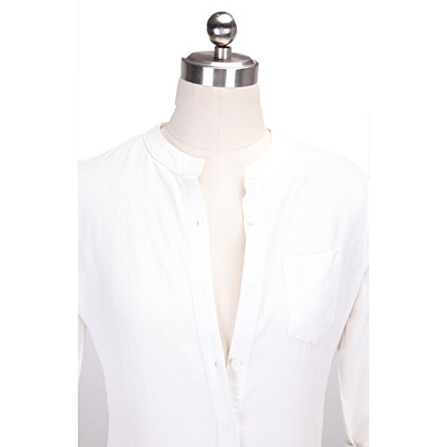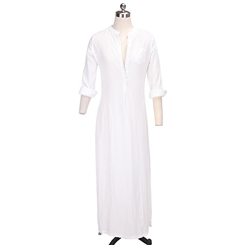 HelloPretty Women Lady Mori Girl Style White Loose Linen Blouse Rolled-up Sleeve Shirt Dress (12)