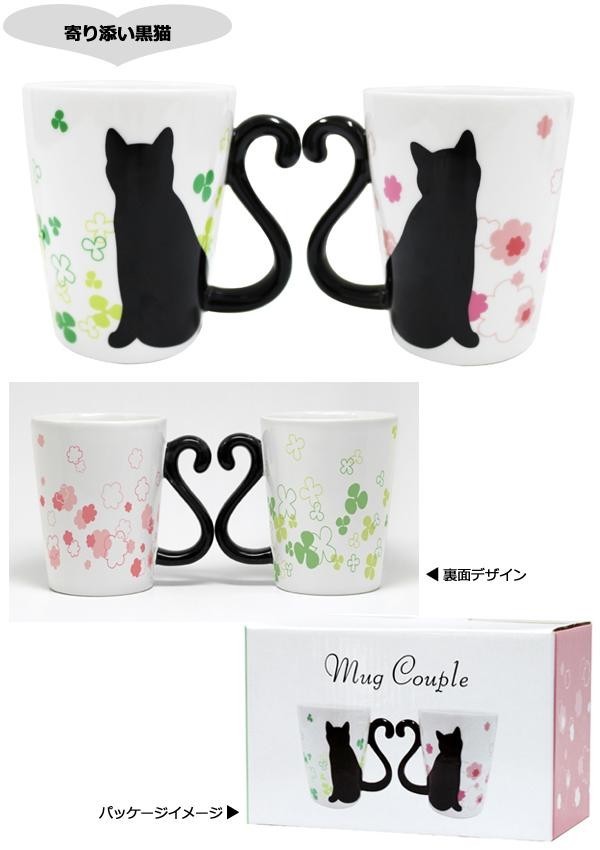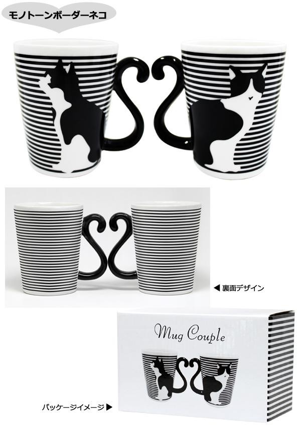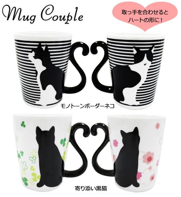 | シンプルを追求したシックなデザインで、細いボーダーから白黒のネコが浮かび上がってくる「モノトーンボーダー」。クローバー畑とお花畑で寄り添う2匹のネコが素敵な「寄り添い黒猫」。ちょっとした贈り物にぴったりなペアマグカップです♪ |
