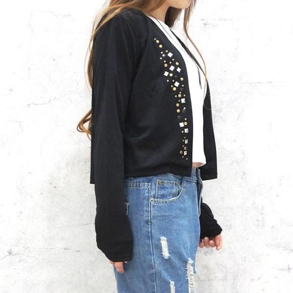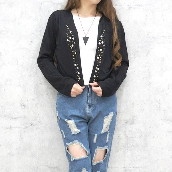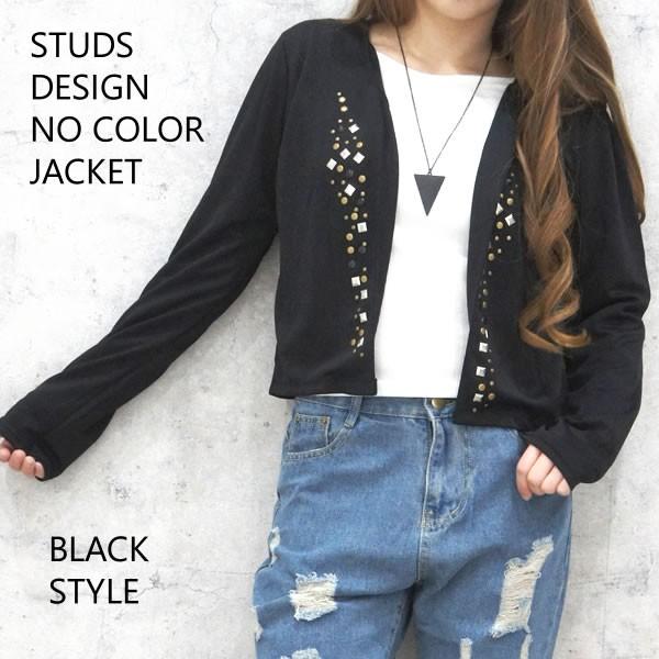 | スタッズ ビジュー ノーカラージャケット カットソー 長袖 黒 ブラック 【カーディガン 黒 長袖 ジャケット パーティー ドレス 二次会 結婚式 レディース 羽織り カーデ 無地 dress カーディガン ボレロ bolero】 | |