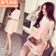 秋季孕妇装蕾丝孕妇衫+开叉背心裙 气质优雅孕妇两件套孕妇连衣裙
