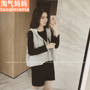 新款孕妇装 春秋款时尚马甲卫衣+中长款T恤孕妇连衣裙 休闲两件套