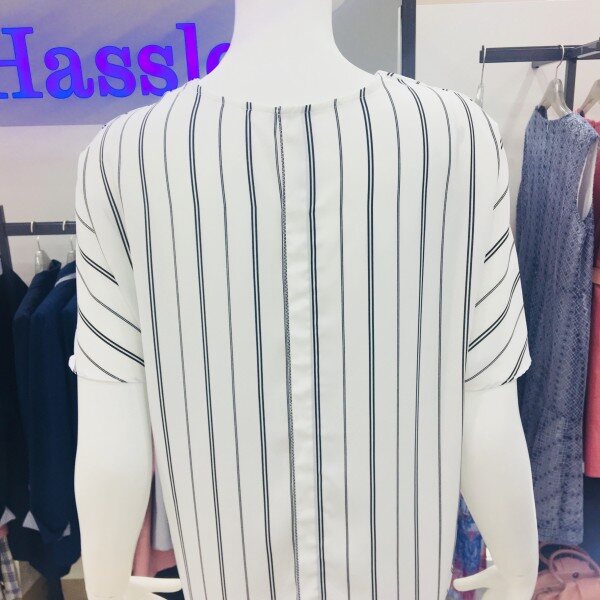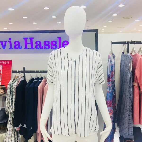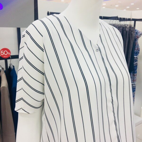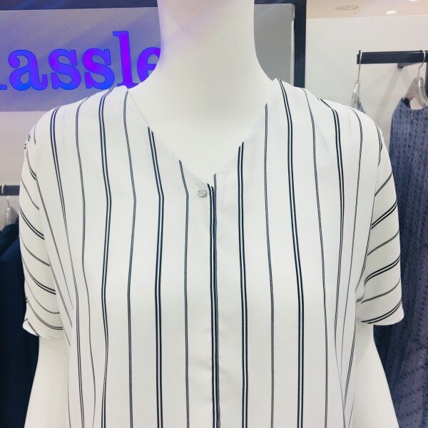 군더더기 없는 심플한 브이넥 스트라이프 블라우스로 더욱 여성스런 연출을 도와주어요