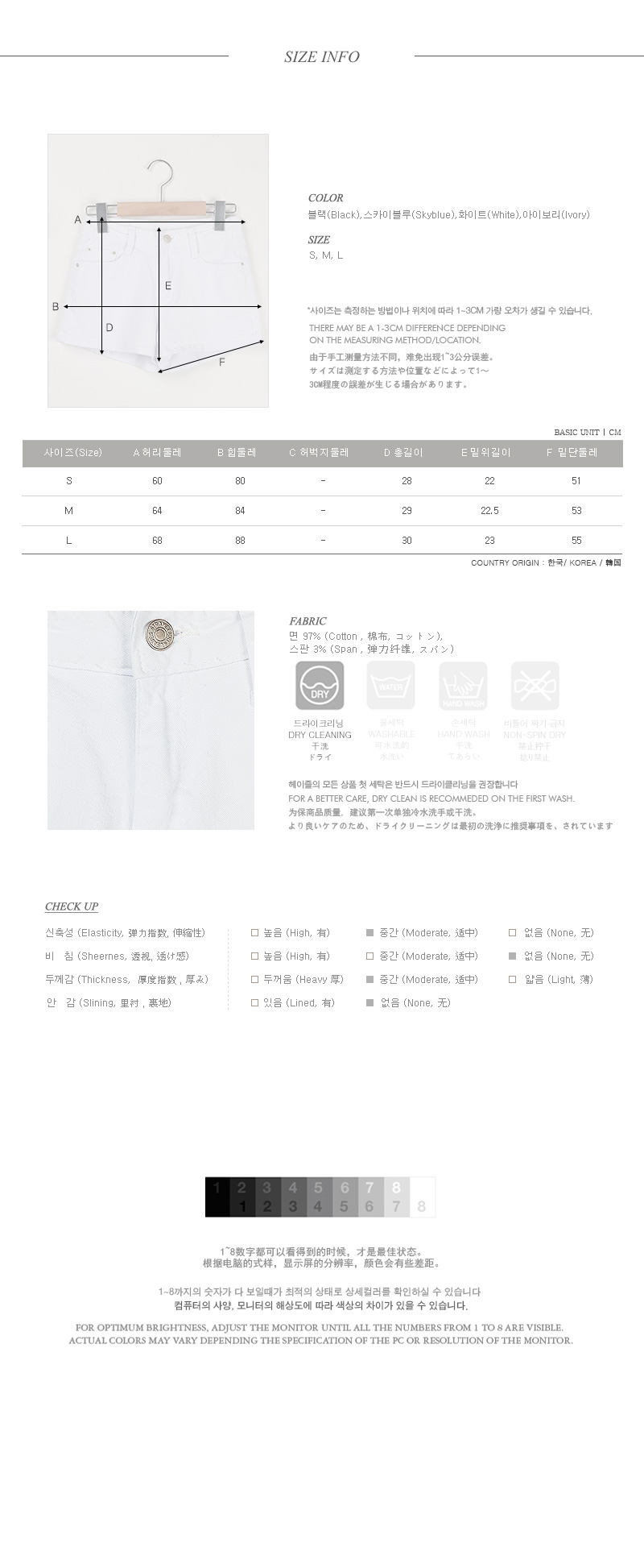 우수한 텐션감과 핏감으로 누구든지 편안한 착용감을 선사해드리는 팬츠 아이템을 소개해드려요~^^ 베이직하고 심플한 디자인으로 다양한 아이템들과 부담없이 데일리룩을 연출할 수 있답니다~ 셔츠,티셔츠 등 다양한 아이템들과 코디매치할 수 있는 활용도 높은 팬츠 아이템이예요~ 숏한 기장감과 핏감으로 한층 더 슬림한 레그라인을 연출해드린답니다