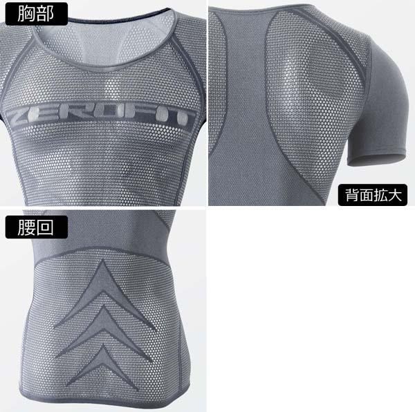 | ●ゼロフィットシリーズ夏用モデル☆独自のメッシュ構造が、汗の水分を冷却エネルギーに変え身体を冷却!! | | ●汗を素早く蒸発させ、熱を奪い冷却すると同時に、風を取り込み汗を冷やして身体を冷却します。 | | ●伸縮率は最大500%と非常に伸びが良く、動きを妨げる不快なツッパリ、べとつきがありません。 | | ●約105gと一般の機能性アンダーに比べても超軽量!! |