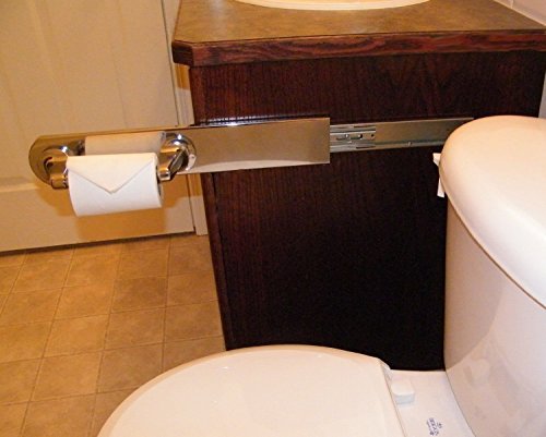 TPSlider IS THE BRILLIANT Toilet Paper Holder Stand THAT SLIDES OUT almost 17 inches. Instead of the roll being behind you where it's difficult or impossible to reach, the holder projects out in front of you where TP is easy and comfortable to grasp.