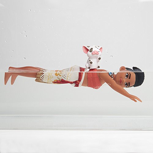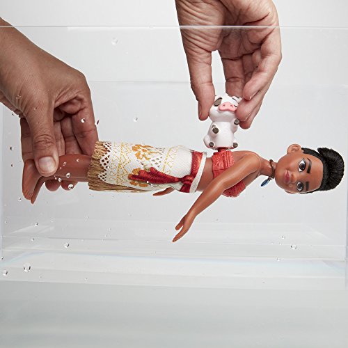 Meet Moana of Oceania, a vibrant, tenacious, and compassionate 16-year-old who is drawn to the ocean, which inspired her very name. This Ocean Explorer doll is ready for a fun swimming adventure. Simply hold the doll's legs together while winding her up, then release her into the water and she swims! Doll comes dressed in a removable skirt and necklace and comes with Pua, her loyal pet pig. Copyright Disney Hasbro and all related terms are trademarks of Hasbro.Feature