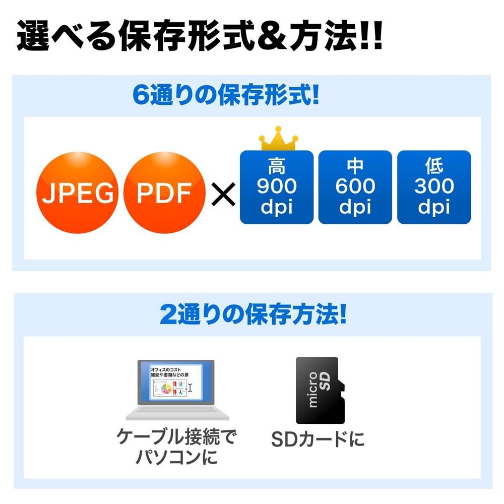 It can be used smoothly even in case of a large amount of data, it can easily select data transfer, in "JPEG" · "PDF" format, 900 dpi / 600 dpi / 300 dpi, can select from color / monochrome, with OCR function