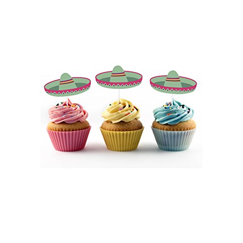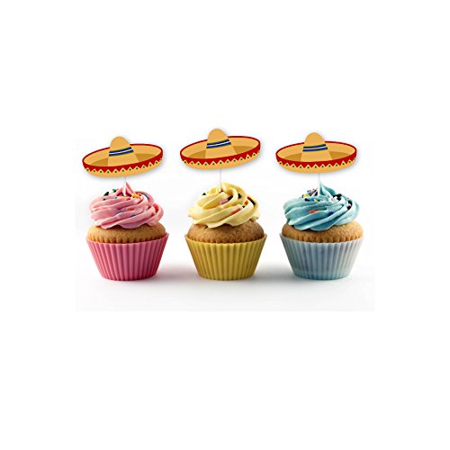 Sombrero Cupcake Topper (20 count) Fiesta, Cactus, Taco Smash Orange Green (Orange Sombrero)