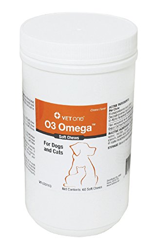 -. Binding : Misc. -. Brand : Vet One -. EAN : 0313985013515 -. Feature : O3 Omega Soft Chews provide a highly concentrated source of omega-3 fatty acids / Cheese-flavored soft chew that is recommended to help support a healthy immune system and to maintain a normal inflammatory response / Chews are made with fresh, wild caught, cold water fish that is quickly processed, ensuring the cleanest and purest possible omega-3 fatty acids -. Label : Vet One -. Manufacturer : Vet One -. Model : 313985013515 -. MPN : 313985013515 -. PackageQuantity : 1 -. PartNumber : 313985013515 -. ProductGroup : Pet Products -. ProductTypeName : PET_SUPPLIES -. Publisher : Vet One -. Studio : Vet One -. Title : Vet One 60 Count O3 Omega Soft Chews for Dogs and Cats -. UPC : 313985013515