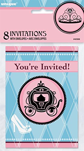 - Invitations include matching white envelopes for easy mailing to request family and friends' attendance at a princess birthday party or princess party
