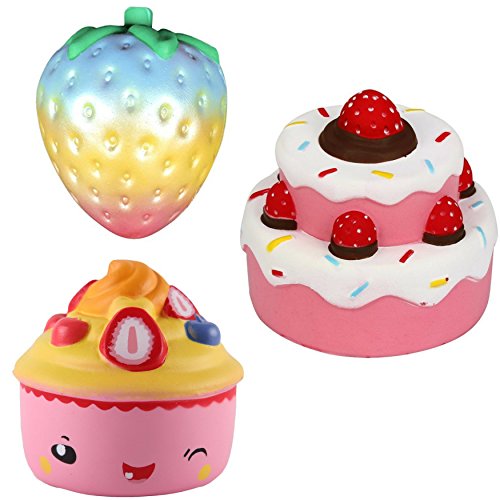 Studio : Super 1 Gifs Publisher : Super 1 Gifs Binding : Toy Product Description Package of 3 giant slow rising scented squishies: Rainbow glow strawberry, Pink cupcake with silly face, and a 2 layer cake!