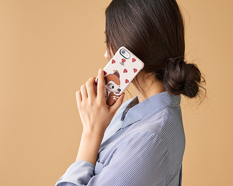 질스튜어트 고유의 귀여운 하트 다이아몬드 패턴 위에 밤비가 프린팅 된 아이폰7 폰케이스입니다.