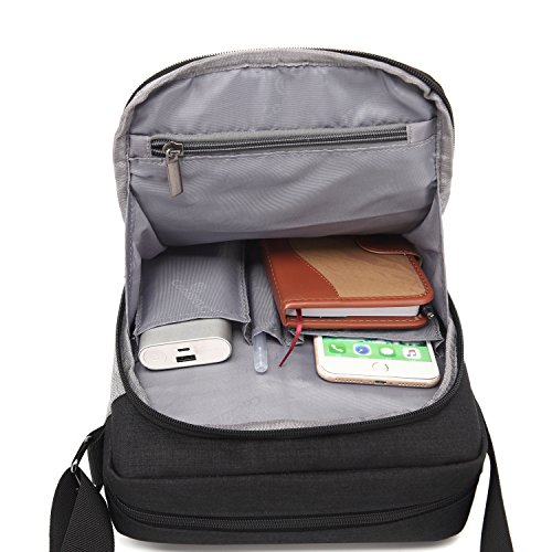 -. Feature : Multi-functional shoulder bag fits tablet up to 10 inch tablet such as Apple iPad Air 2/ iPad Air, iPad 4 , iPad 3, iPad 2, Samsung Galaxy Tab S 10.5, Tab 4 / Tab 3 10.1 inch Tablet. / Big front accessory pocket keep varies small items. / Front small pocket for phone. / built-in anti-shock waterproof foam can always prevent impact force to protect your important item like MP3,iPad etc. / Bag Interior Size:8.6*9.1*3 inch;Exterior Size:9.1 x 3.5 x 10.6 inch. Reasonable and huge roomy can keep more items like iPad, books, wallet, power bank etc.