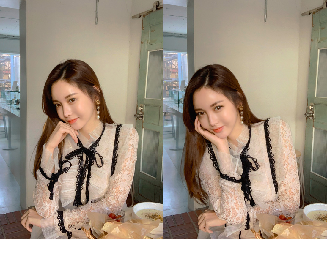 소매 끝단 프릴과 자연스럽게 퍼지는