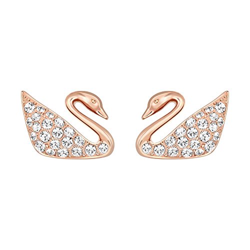 -. Title : Swarovski Swan Mini Pierced Earrings, Rose Gold-Plated