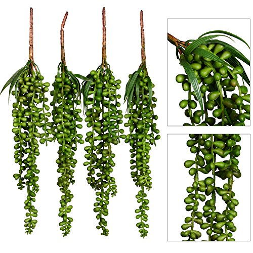 - Package comes with 4 pcs artificial hanging string of pearls plant,each plant length 14.4"/ 34 cm,stem length: 9.9" / 25cm.each 5 stem,green color