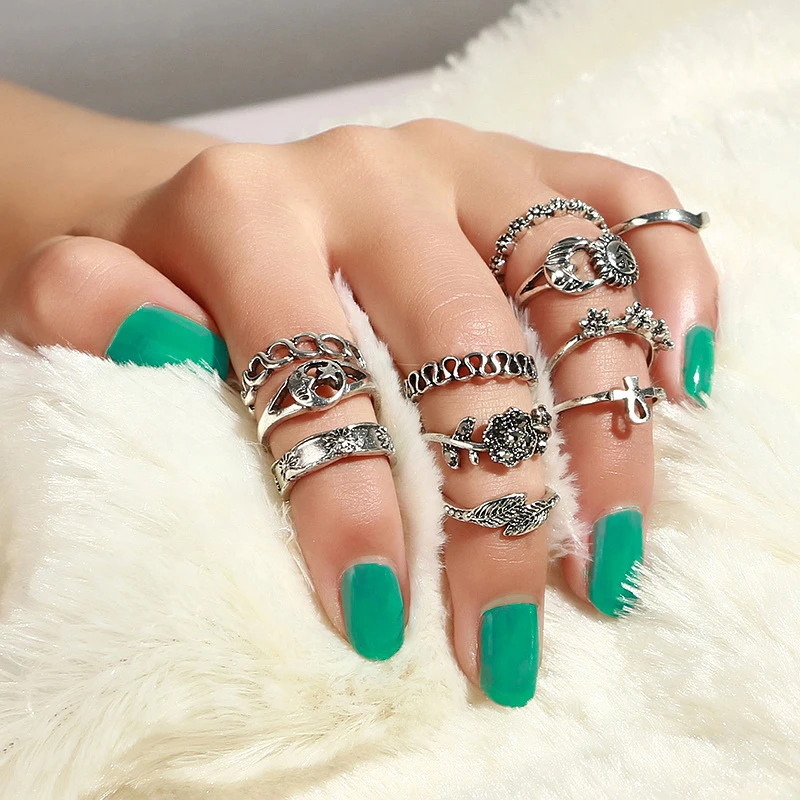 Function:Vintage Knuckle Opal Finger Ring Set For Women