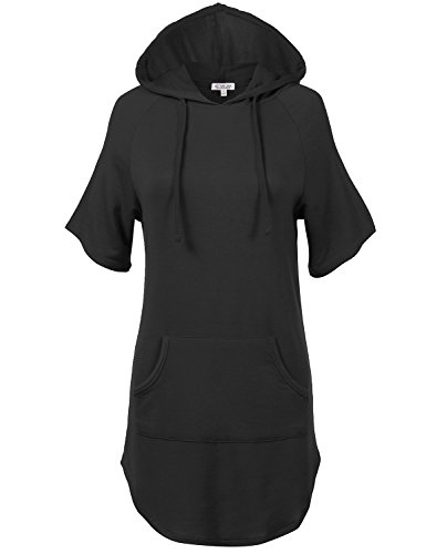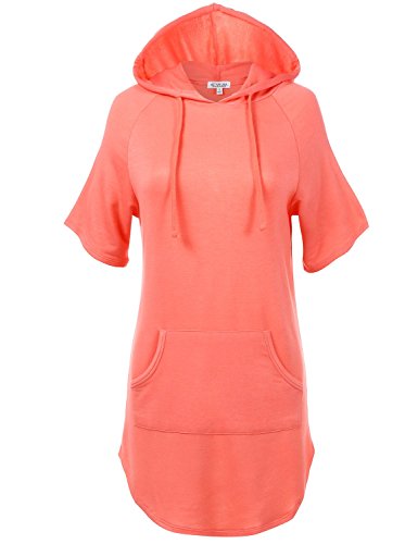 | Luna Flower Women's French Terry Kangaroo Pocket Hooded Tunic Tops |