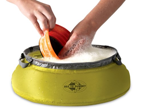 Product Description At last, a portable camp sink that really works! Our sinks are great for collection and carrying of water for purification, cooking, washing dishes or personal bathing. They¿re ideal for backpacking or group camping and they make a great gift for the outdoors person who has everything. Now available in a compact 5 Liter size, which holds 1.3 gallons and makes an excellent dog bowl; a 10 Liter (2.6 gallons), and for large groups a 20 Liter size (5.2 gallons). 0